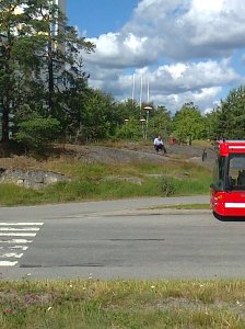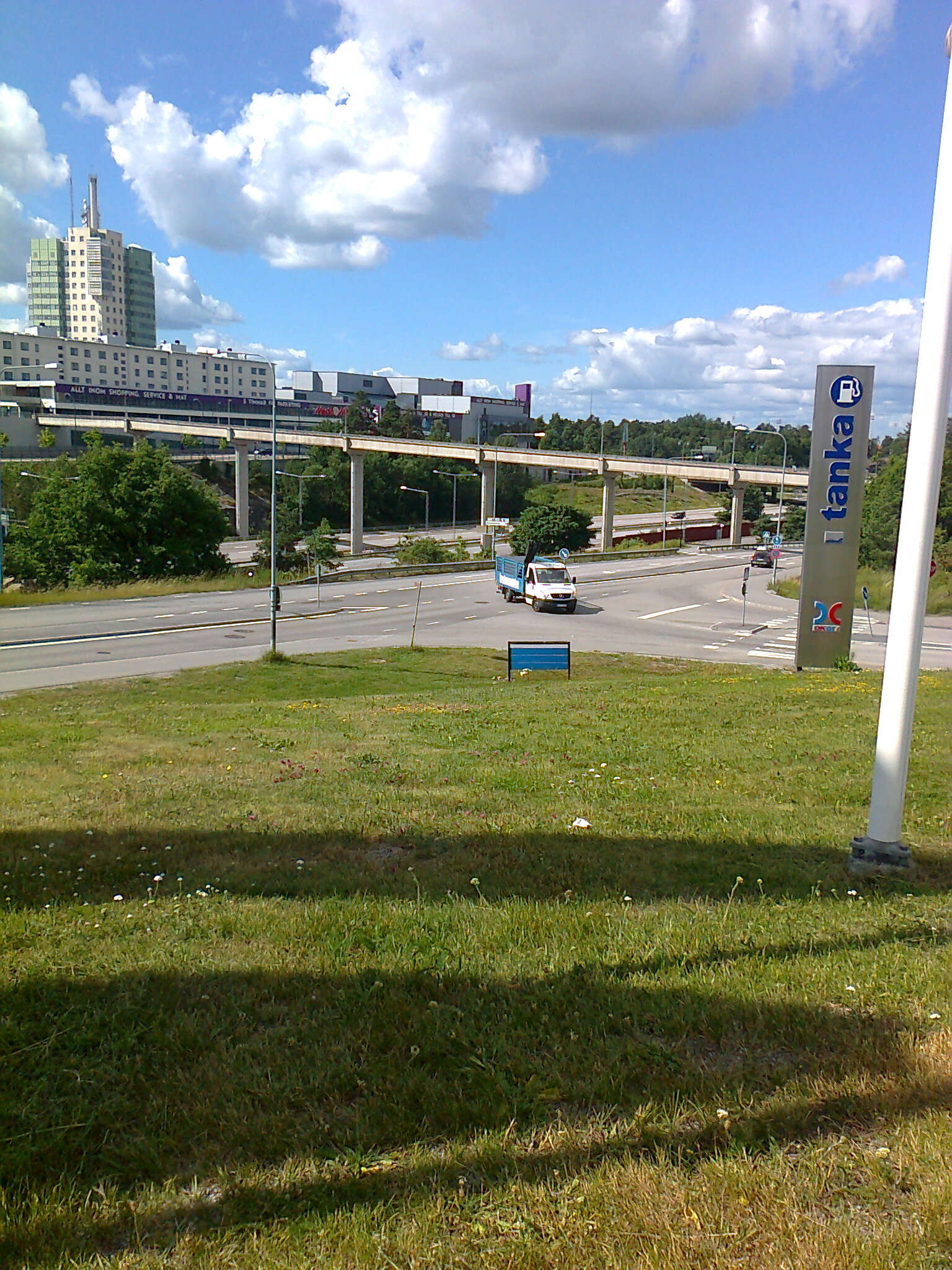 Det här såg jag från bilen under timmen jag väntade i den. Det som syns på håll är delar av Nacka forum. För långt att gå då det inte bara är raka vägen dit.