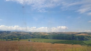 Jag checkade in bagaget vilket gick lätt. Börjar få grepp om hur det fungerar. Gick sen på tåget och hittade min plats som tyvärr inte hade det renaste fönstret. Men, jag orkade inte flytta. Ville också se lite av den sidan som jag inte såg när jag åkte från Drama i april. Tur att man kan förbättra bilder ganska bra i datorn.