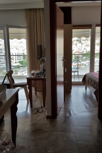 Snart var vi i Kavala. Elisabeth som hyr ut lägenheten mötte mig. Varken utsikten eller lägenheten går att klaga på. Dessutom hade hon försett mig med vatten, en flaska vin, marmelad, juice, bröd, kaffe och te, rulltårta och en stor välfylld skål med frukt.