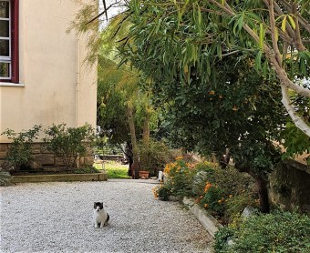 … av den katt jag har sett ett par gånger. Den satt en lång stund och tittade på mig när jag stod utanför grinden. När jag skulle ta ett kort gick den fram mot mig, satte sig helt plötsligt och gjorde sitt helt ogenerat.