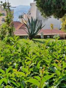 Trevlig taxichaufför och jag kom till Anatolia, som är alltid lika trevligt att komma till. Fick mitt rum 215 med träd utanför. Det fanns inget bord, vilket de fixade. Men så gick det inte att öppna balkongdörren (bara vädringsdelen). En i personalen försökte fixa det, men det gick inte. Och jag skulle få vänta till i morgon. Men jag kände mig oskyddad. Händer något med hotellet så kommer jag inte ut. De förstod. Jag fick ett annat rum, större och trivsammare, men inte med träd utanför utan ett tomt hus. Ett rum som är större, samt ett jag bott i en gång förut.