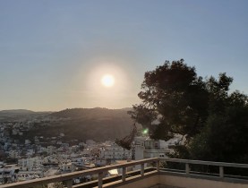 En buske beskars idag och det var intressant att lära sig mer om. Speciellt att man börjar nerifrån och tar bort de tjockaste delarna för att det nya skall växa till sig. För övrigt är det en fantastisk tid att vara här i Kavala, då naturen börjar att leva upp igen. Och när den svaga solen börjar att gå ner bakom berget.