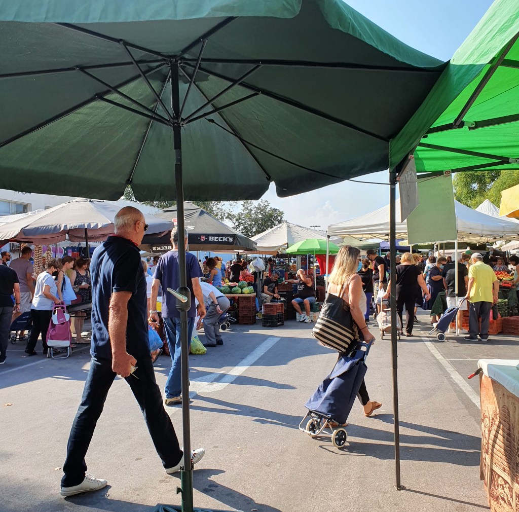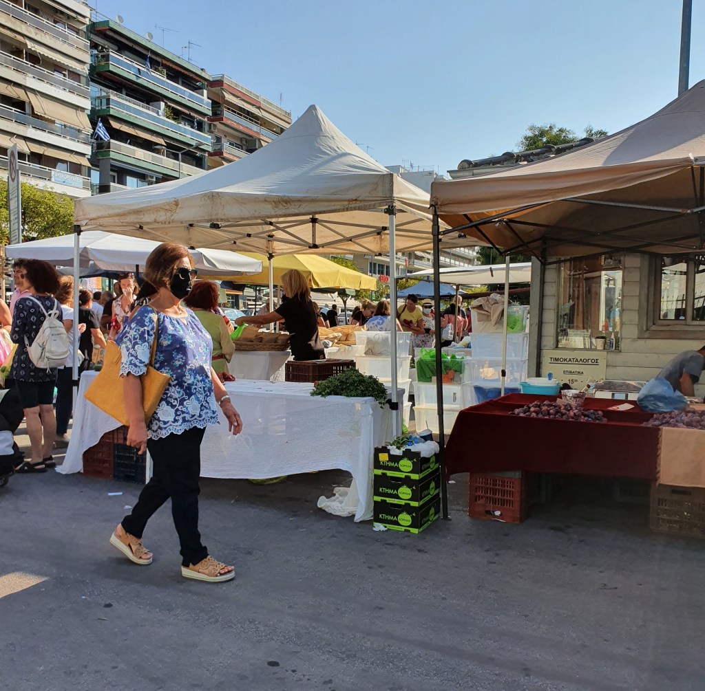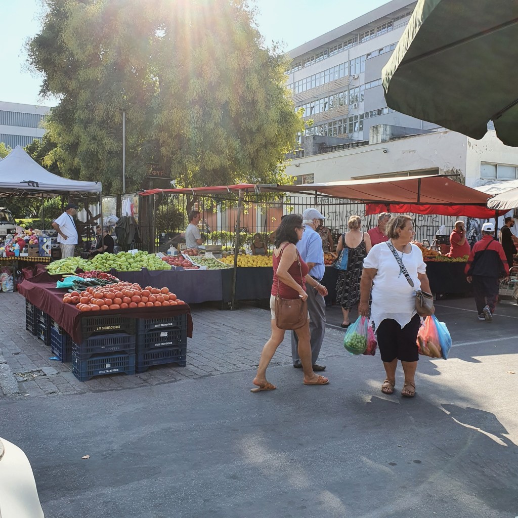 Idag gick Julia, Oskar och jag ner till marknaden. Vi delade på oss, bestämde att vi skulle träffas tjugo minuter senare. Jag gick sen och handlade på Masoutes, medan de gick till kafeet. Fullt, men vi hade tur, när vi hade beställt det vi ville ha. Vi fick ett bord. Efter en lång pratstund på två timmar tog jag taxi upp och de gick till stranden.