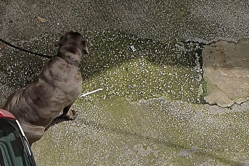 Grannen mittöver har en hund som jag har döpt till Wooff. Har upptäckt att det är en vakthund. Ibland när jag kommer ut på avsatsen woffar han till och jag hoppar högt. Ibland tittar han upp på mig med ett ”ansiktsuttryck” – jaså det är bara du. Dig skäller jag inte på, för du är inget hot, lika lite som fåglarna som sitter på avsatserna är det. Det tackar jag för. Ofta vet jag inte vad han skäller på, men det kan vara någon som går förbi på gatan eller något som jag inte uppfattar.