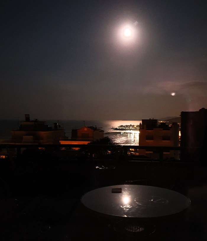 Vaknade klockan tre i natt och kunde inte somna om. Gick en runda i huset och såg från biblioteket fullmånens ljus som speglade sig på havsytan.