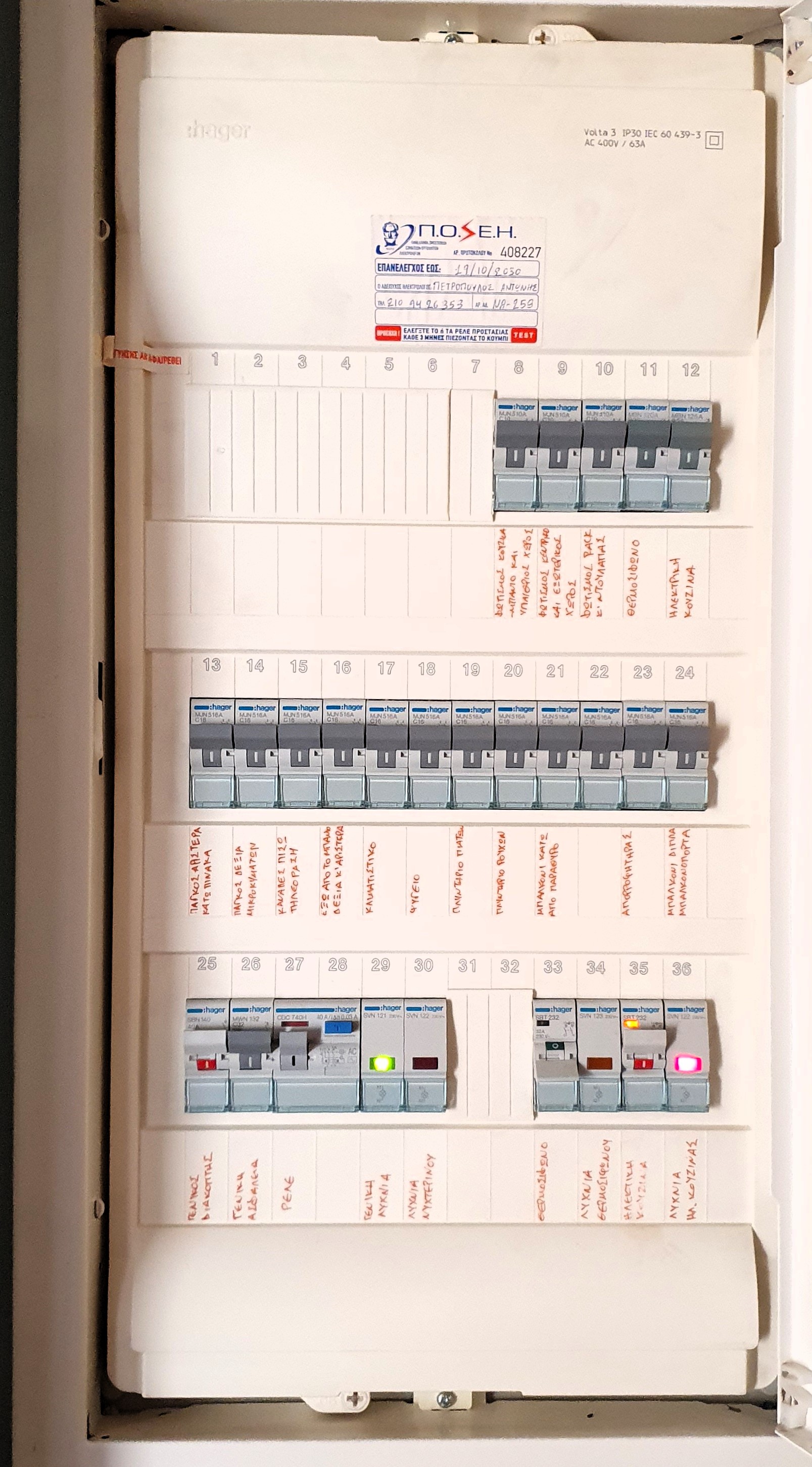 Så är det ny dag igen. Sovit bra, minst 10 timmar, (men jag hade lite skumma drömmar), lite kyligare idag då solen gömmer sig bakom molnen. Men jag klagar inte. Däremot är det kallare på annat sätt. Igår började varmvattnet blir allt svalare. Jag blev lovad varmt vatten under veckan, men det har antingen blivit något fel i fastigheten eller också har värden glömt att berätta att jag måste koka vattnet efter några dygn (som i andra lägenheter som jag har bott). Så nu väntar jag på att höra ifrån henne. Sände en bild på el-tavlan. Har ett hum om vilken flärp, men jag vågar inte riskera att göra helt fel. Och så långt räcker inte mina grekiska språkfärdigheter att jag genom att läsa texten från sidan utröna om det är rätt flärp.