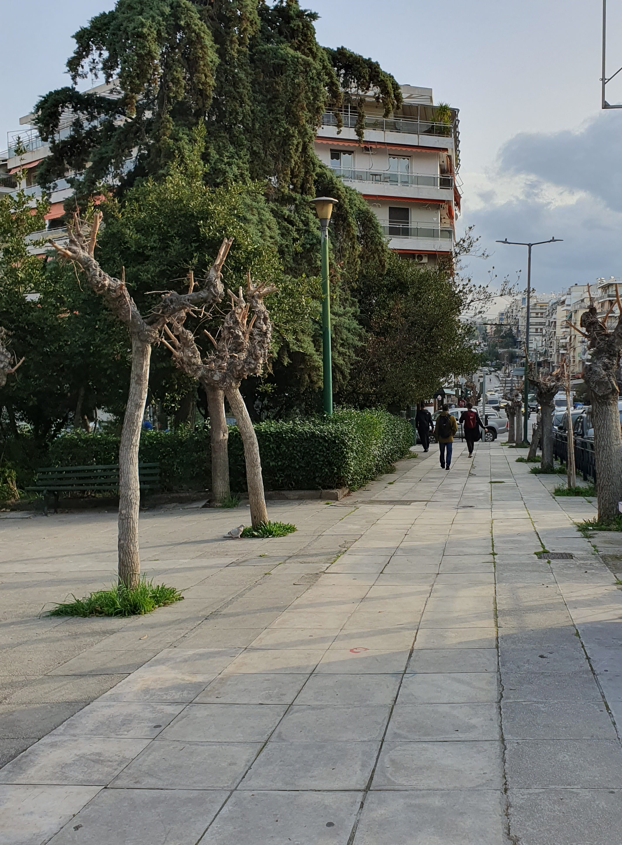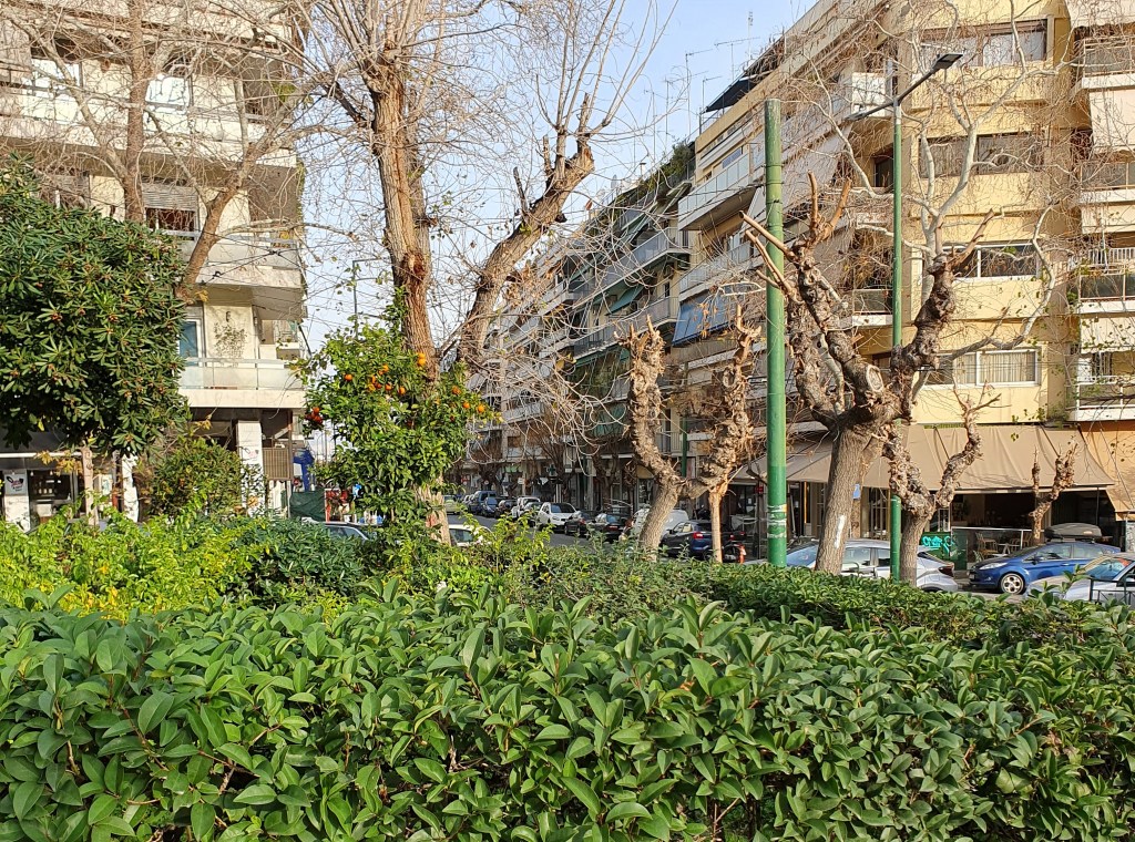 En bra livsmedelsaffär finns på kort gångavstånd. Övergångsstället är lite farligt. När det regnar blir det halt. Det är nerförsbacke och man får gå tvärs över vägen, lätt att man tippar åt sidan. Igår höll en bilist att nästan köra på mig, när han körde mot rött. Stannade en halvmeter från mig. Bra affär, men de har inte vinet jag brukar dricka till maten. Men till helgen ska jag ändå köpa Retsina, för det har affären. Vilken affär med självaktning har inte det. Men den som söker brukar oftast finna, så kanske jag hittar mitt favoritvin.