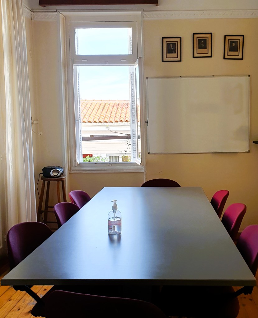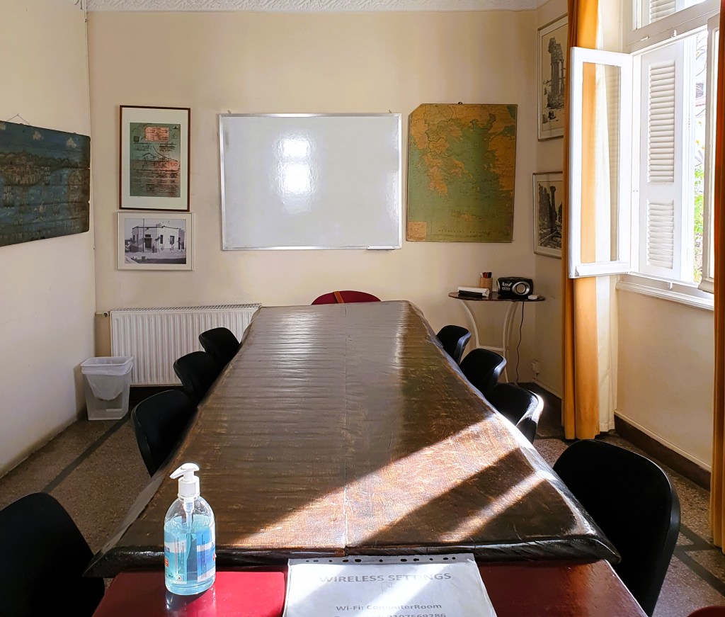 Eftersom det bara är drygt en vecka kvar, har jag tagit några bilder för att ni ska få en bild av i vilken inre miljö som vi läser grekiska. De små klassrummen, för det finns större på markplan.