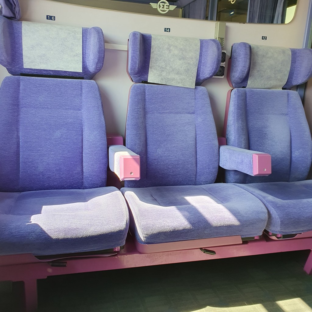 Allt gick min egen väg. Fungerande rulltrappa, Egen kupé i fyra och en halv timme. Från Lárissa till Saloniki gick det i raketfart.