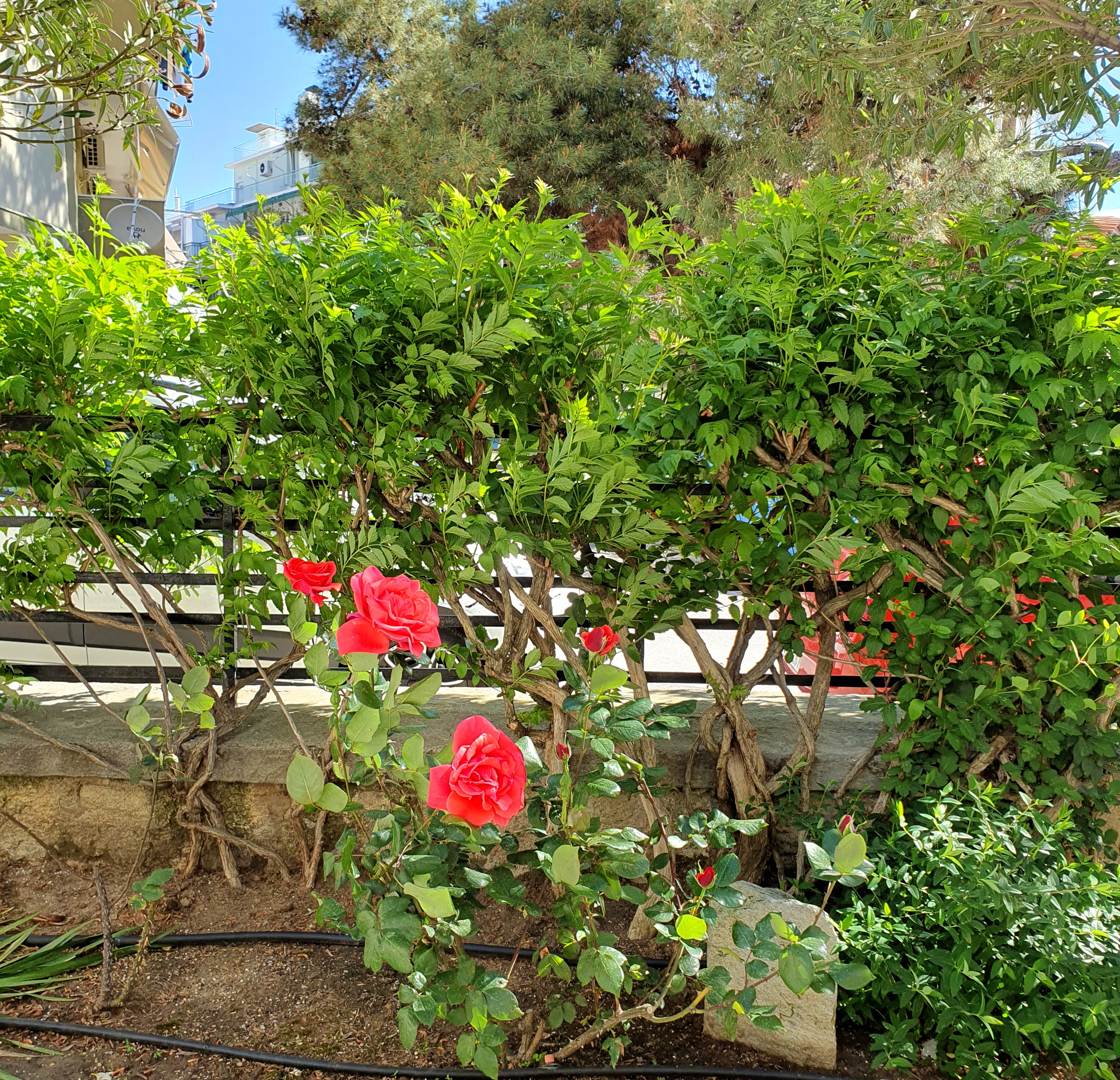 Vaknade tidigt, himlen var grå och kall vind, om man jämför med 25 grader. Det blir en hel skrivardag, tänkte jag. Men när det ljusnade, så lyste solen från en klarblå himmel, lite kylig vind. Så jag gick ner till stan, för att köpa godisbitar, kakor och honung. Precis när jag kom ut på gatan fick jag en bild av att godisbutiken inte fanns kvar. Och mycket riktigt – den gapade lika tom som många andra butiker och hus är. Ibland undrar jag om jag har en radar inom mig. Det här är inte första gången. Nyligen, rulltrappan i Aten. Ok, men hoppas inte MeliArtos stänger igen. Då blir jag riktigt, riktigt ledsen. Hittade dock en butik som ligger nära Massoutis. Och då fick jag lust att åka upp till svenska huset innan det kom nya gäster. Så jag köpte en drös med kakor. Tog taxi upp och träffade, samt pratade med Evelina och Stella, efter en tur runt i trädgården. Den är lite i sin linda just nu. Visst har blommat över, visst är på gång och visst är i sin vackraste prakt. För övrigt var allt som vanligt.